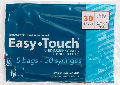 EasyTouch Insulin Syringes 0.5cc (0.5ml) x 30G x 5/16" - 5 bags (50 SYRINGES)