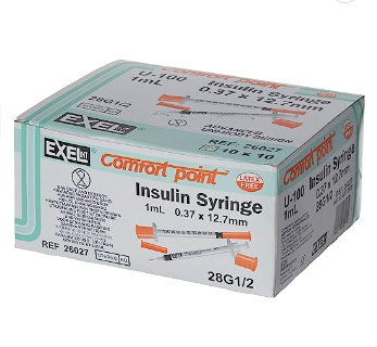 Exel U-100 Comfort Point Insulin Syringes 1cc x 28G x 1/2″ (1 BOX/100 syringes)