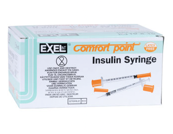 Exel Insulin Syringes: Are latex free Have a permanently attached needle Sterile Have reduced dead space for...